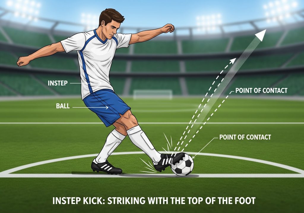 リコ:そして、シュートには「インステップキック」!足の甲でボールの中心を強く蹴ると、速くて強いボールが飛んでいくよ!
